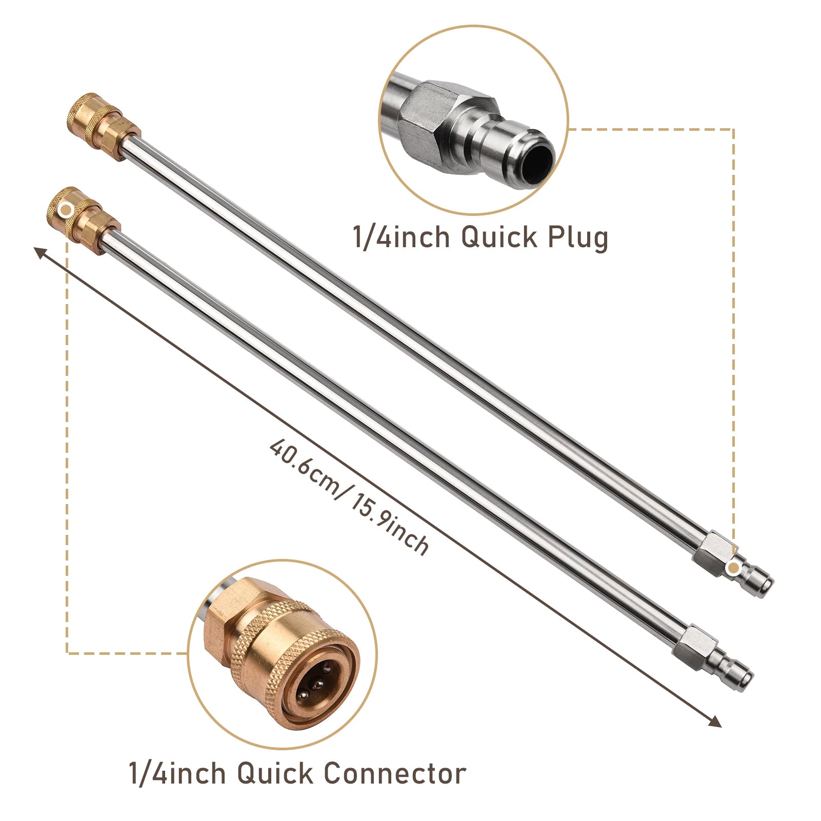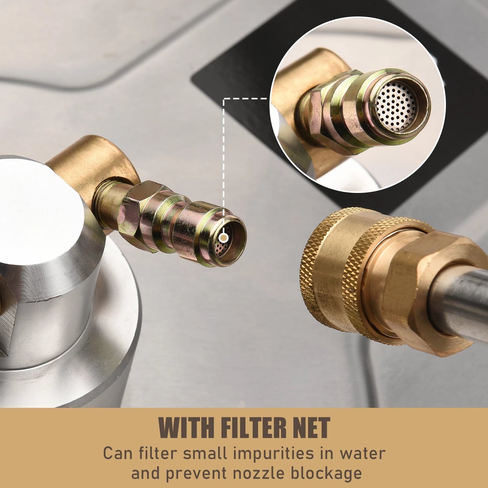 [Quick Connection] With 1/4 inch quick connector, easy to connect with included extension wands or other 1/4 inch quick connect fitting, and the angle is adjustable; copper connector design, no leakage.
