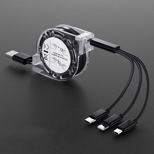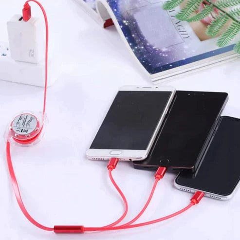 Save your space with this 3-in-1 retracting USB cable that allows charging three devices at a time, and its coiled design avoids any tangling of the wire.