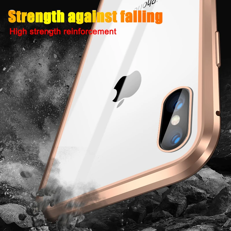 New magnetic adsorption phone case adopt multipoint and strong magnetic field adsorption technology with built-in magnet surrounds the glass case.