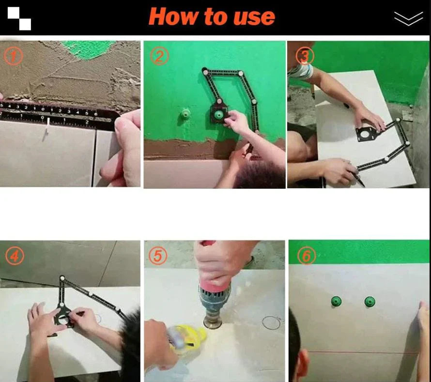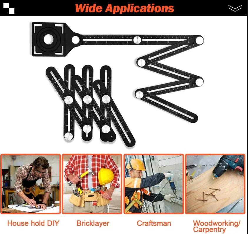 - 【Upgraded Angle Measuring Ruler 】: This angle ruler has six-piece ruler and metal knobs with a tile positioning hole opener, you can adjust the six metal knobs to create the desired shape accurately and then find the position to drill the correct hole. With folding 6 sides, users can easily create and measure special angles or shapes by the angle finder tool to improve work efficiency.