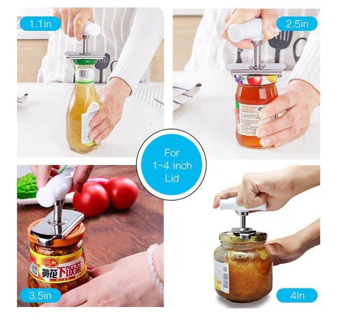 Jar Opener for Weak Hands: Reverse the jar cap counterclockwise and unscrew the jar cap. So easy to use, opens any jar. The jar opener made of stainless steel and has a nice handle is a plus. Nothing works as well as this design.