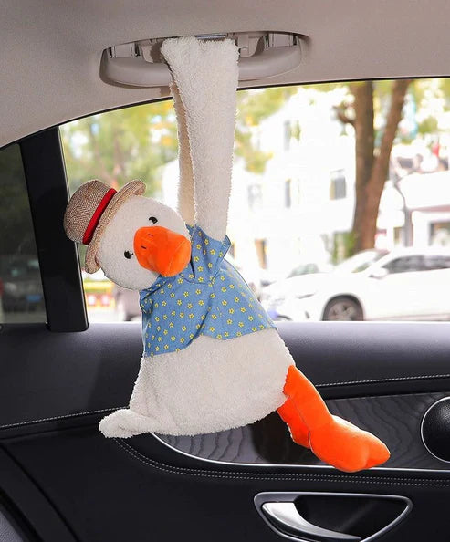 This product is a creative hanging duck tissue box that is great for cars and trucks. The product can be used to hold either paper or a paper box, which makes it portable and convenient and also it is a perfect gift for your family members or friends!