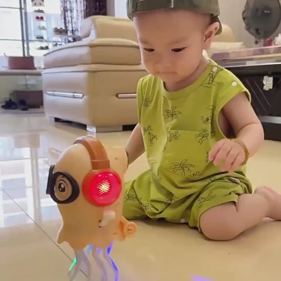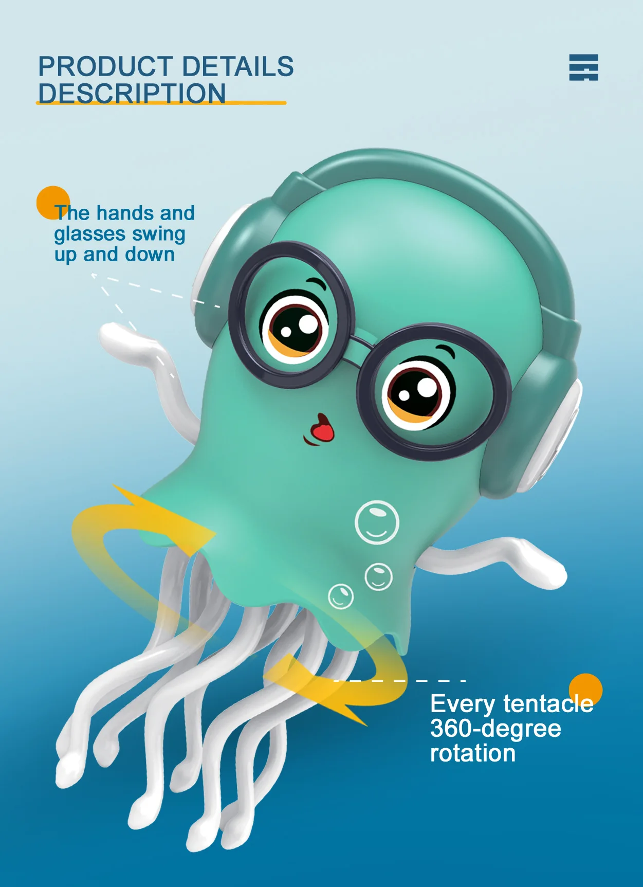 【Multifunctional】 Suitable for Motor Skills & Sensory Development The toy encourages crawling, walking, and active play. Its dynamic movement and sound effects help develop motor skills, coordination, and sensory awareness, making it both fun and educational 【Encourages Active Play】With every move, this wiggly wonder jellyfish sparks joy and laughter. suitable for indoor play, this electric dancing jellyfish toy encourages crawling, walking and active play, making it a great choice for birthdays, holidays or any occasion - it brings laughter, joy and learning to growing children.