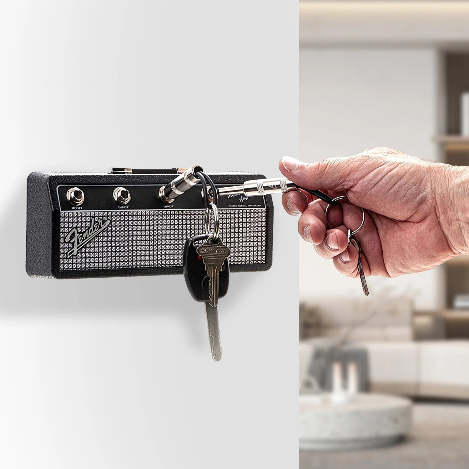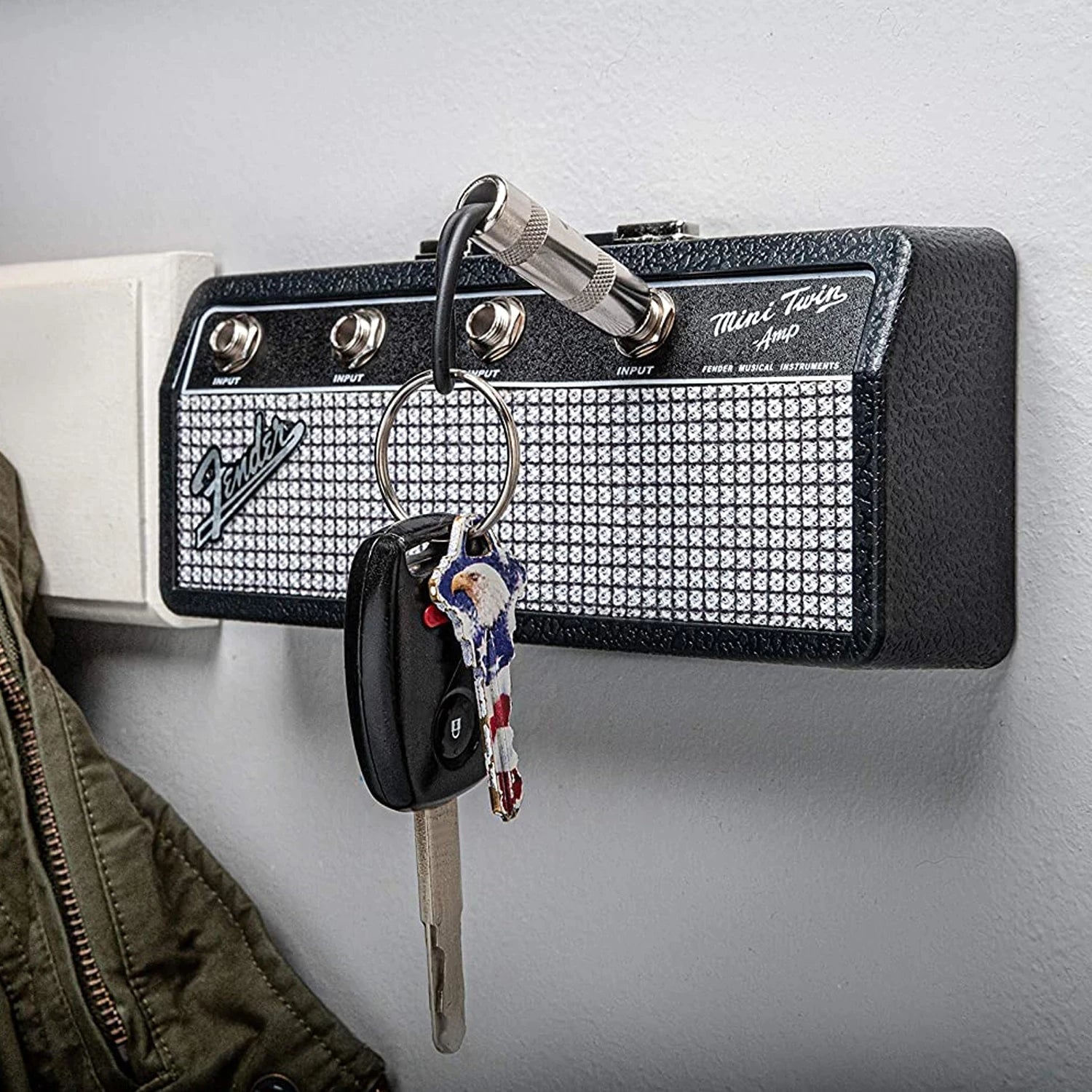 The Fender Jack Rack comes with 4 guitar plug keychains featuring the iconic Fender logo. Not only is it great for hanging keys, but it's also a great way to express yourself by expressing your love for music.