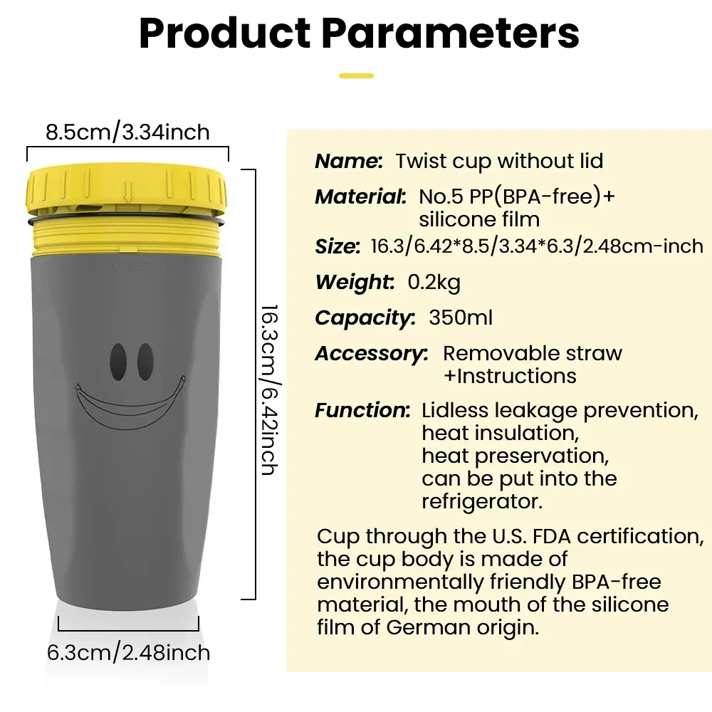 【Twist Lid No Lid Design】This new mug has a silicone membrane and a revolutionary design without a lid. Instead, you simply twist the silicone membrane onto the top of the mug and watch the seal form.
