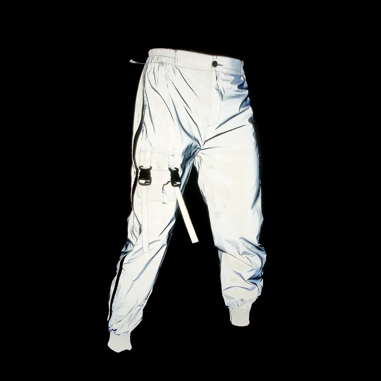 Holographic Reflective Rave Cargo Pants | Streetwear Unique Men's Reflective Rave Bottoms Festival Fit | Rave Outfit Concert Clothing