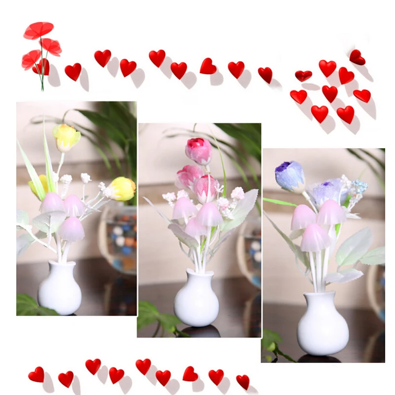 Flowers Mushroom Bedroom Decor Light Sensing LED Night Light Bed Lamp Night Lamp