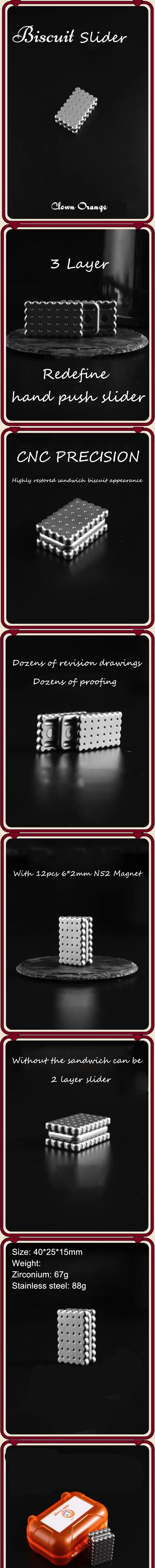 Lee Orange Cookie Push Slider Biscuit Sandwich Three Layer Up And Down EDC Relief Finger Toys Jouet Anti Stress Fidget Spinner
