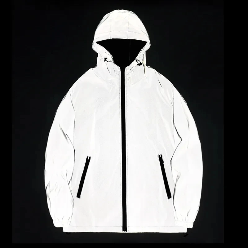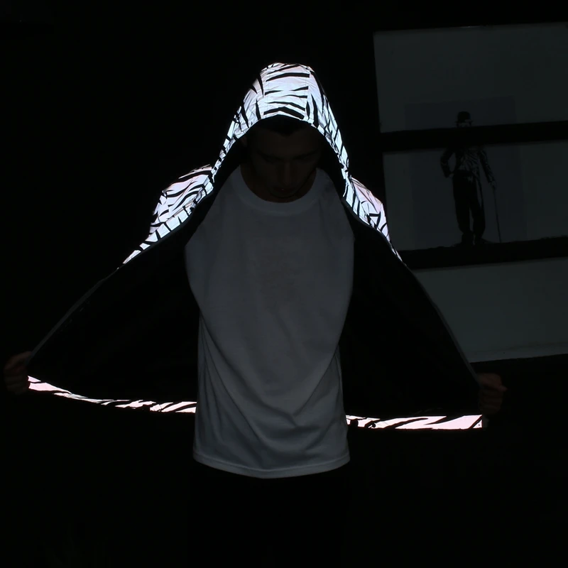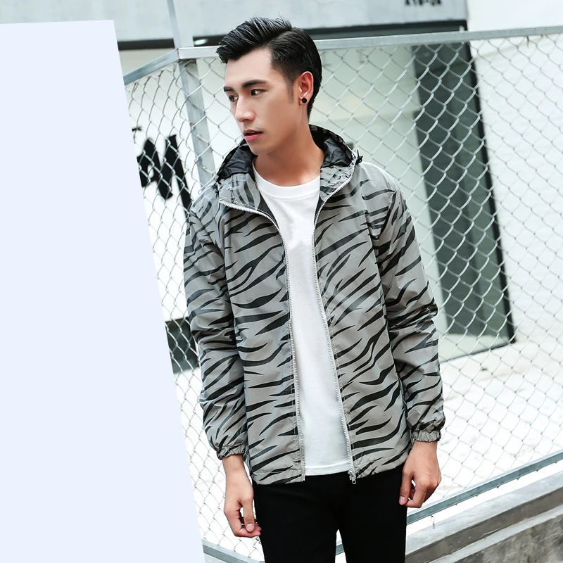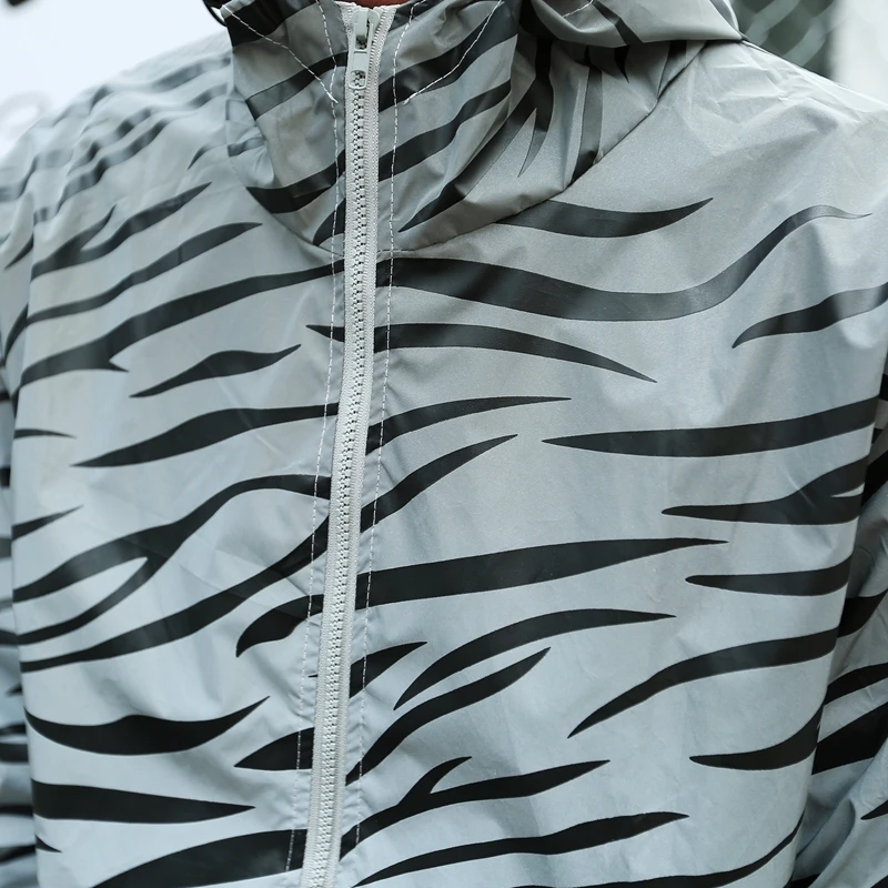 Leopard zebra reflective Night shining Hooded Windbreaker Jacket