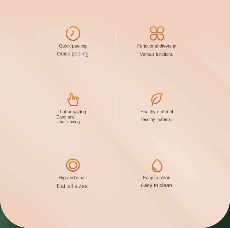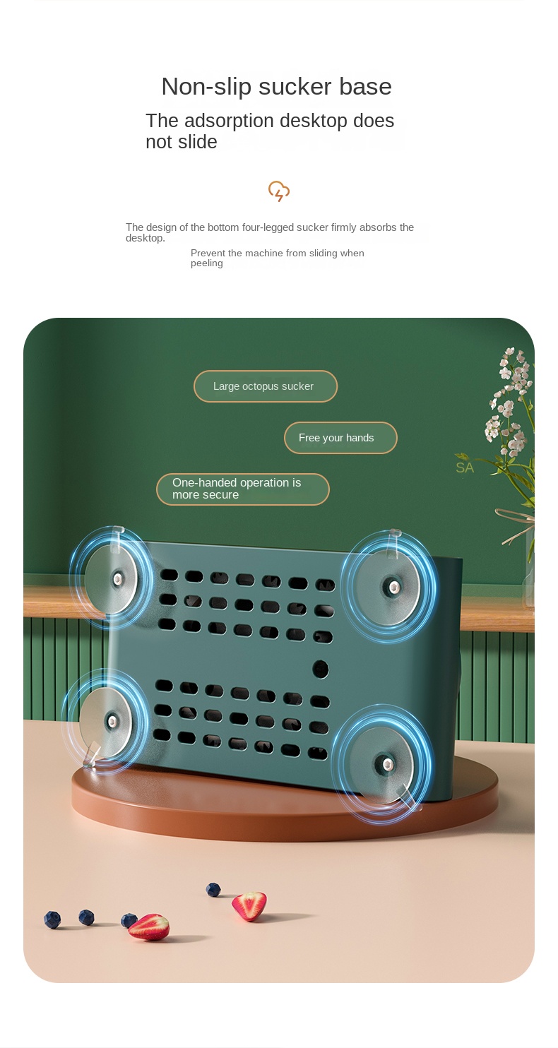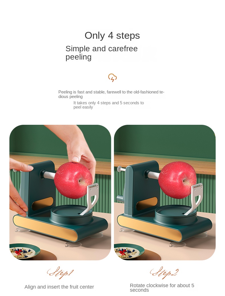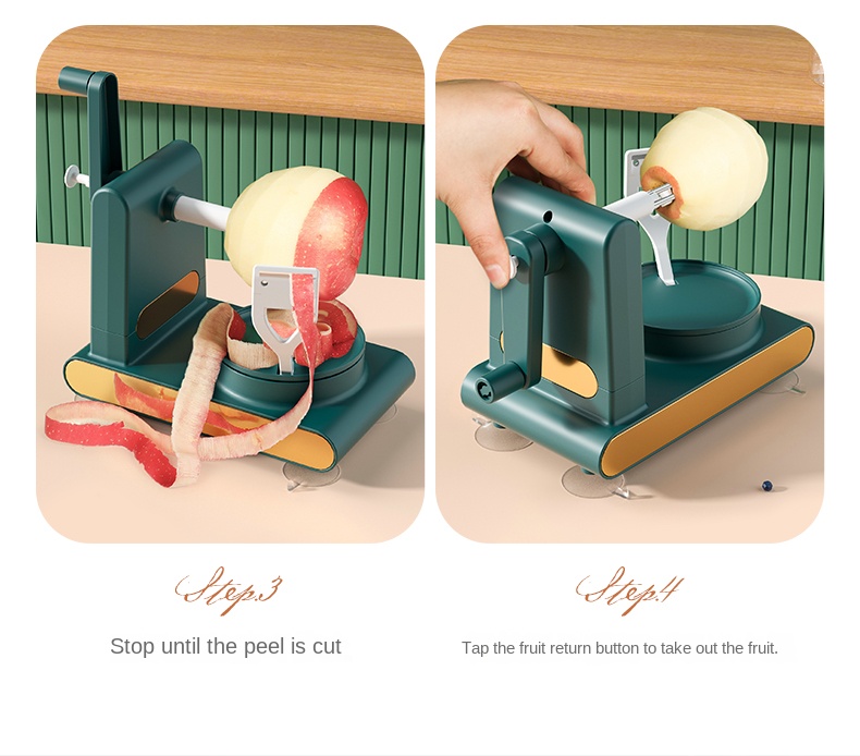 The blade rotates with the fruit, the sharp blade can quickly peel the fruit skin, and the fruit skin is very thin and complete, does not waste a lot of flesh.