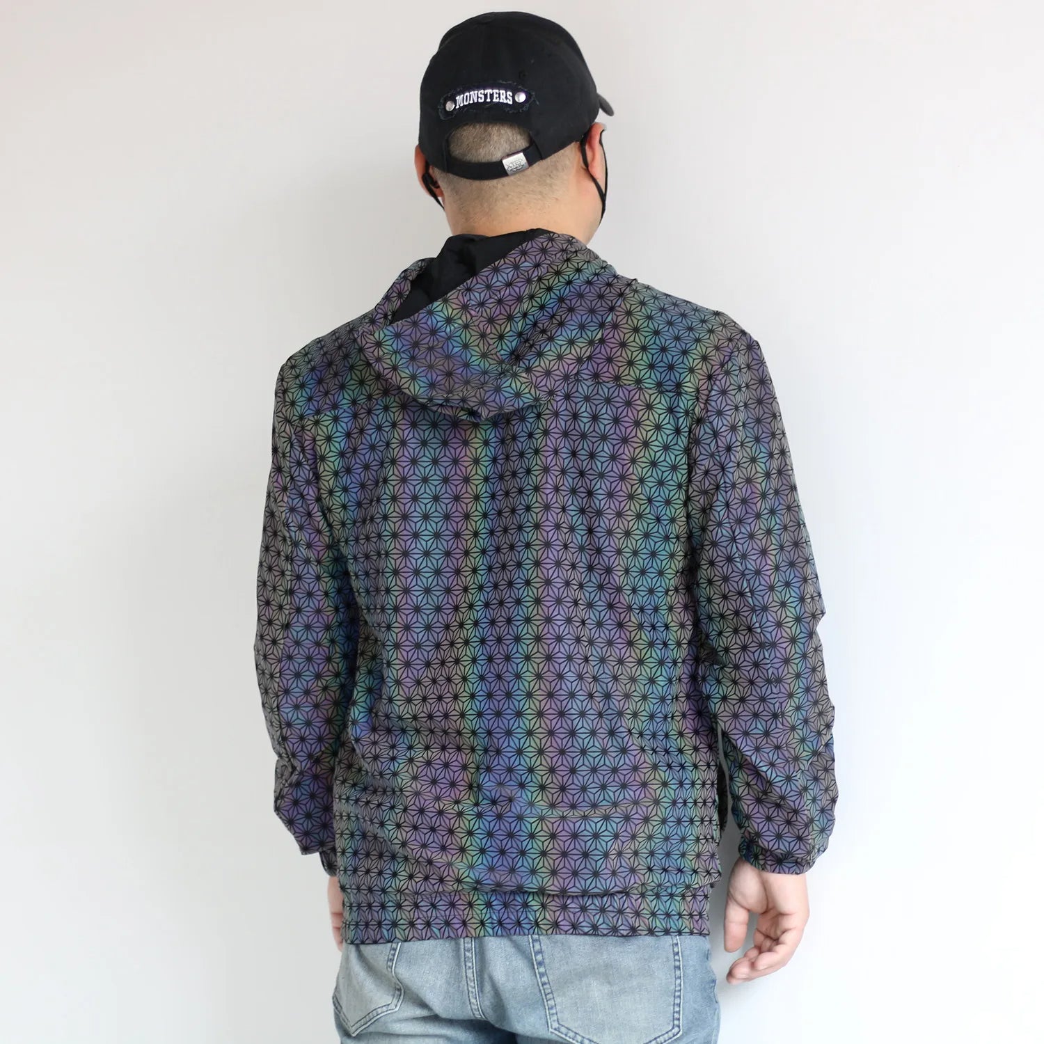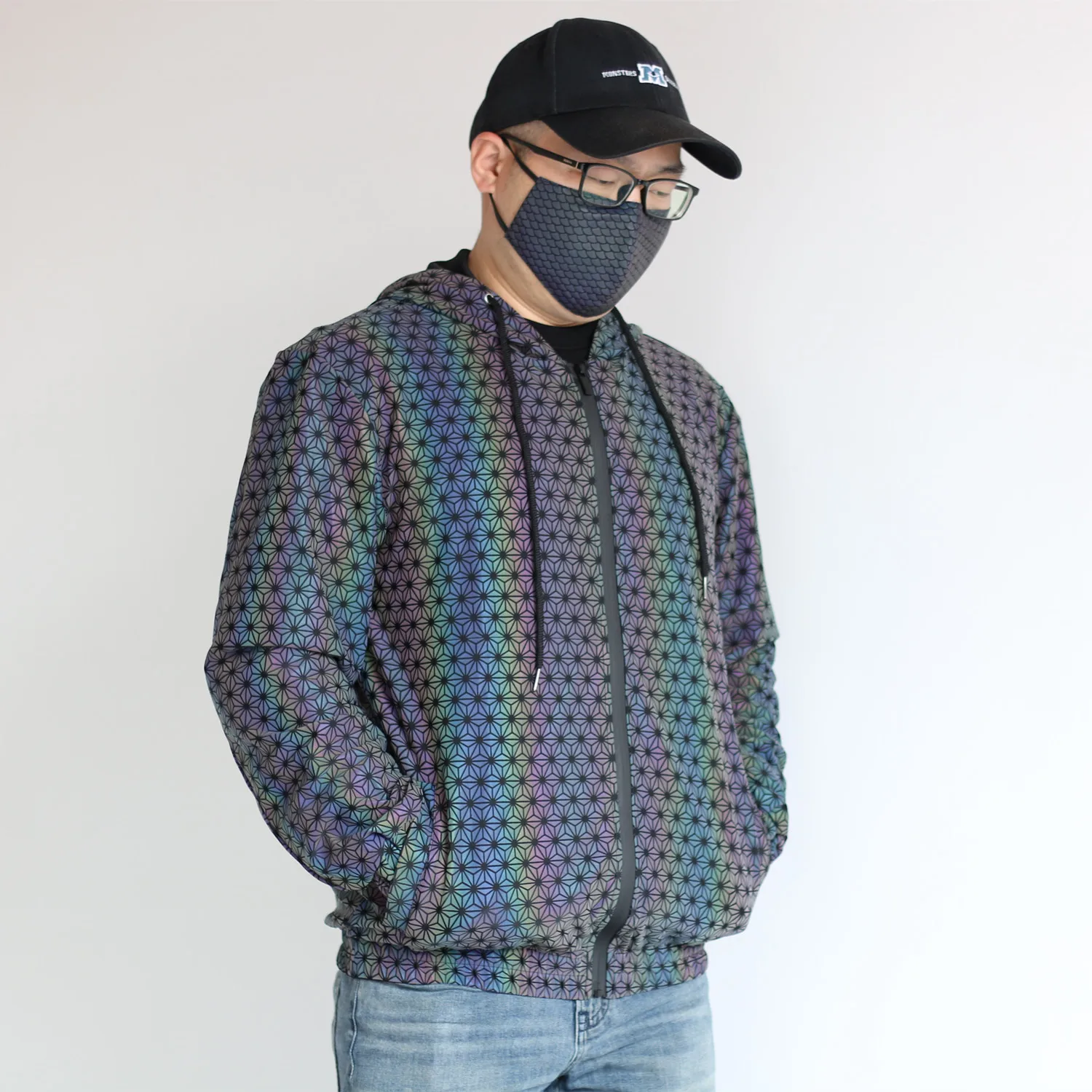 Men's Holographic Reflective "Geometric Pattern" Jacket Hip Hop Knitted Reflect Rainbow Casual Coats