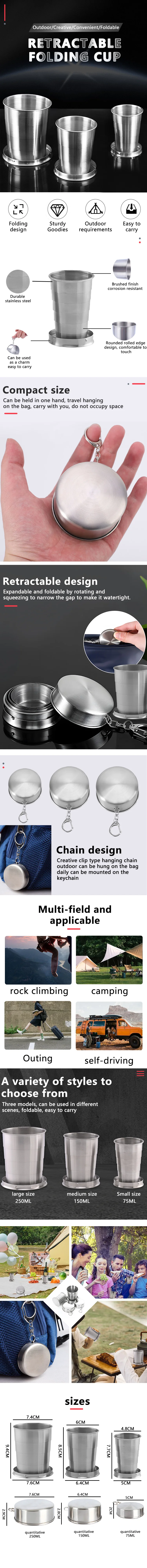 Stainless Steel Folding Cup Foldable Travel Camping Cookware Retractable Cup Teacups Telescopic Cup Drinkware 75ml/150ml/250ml