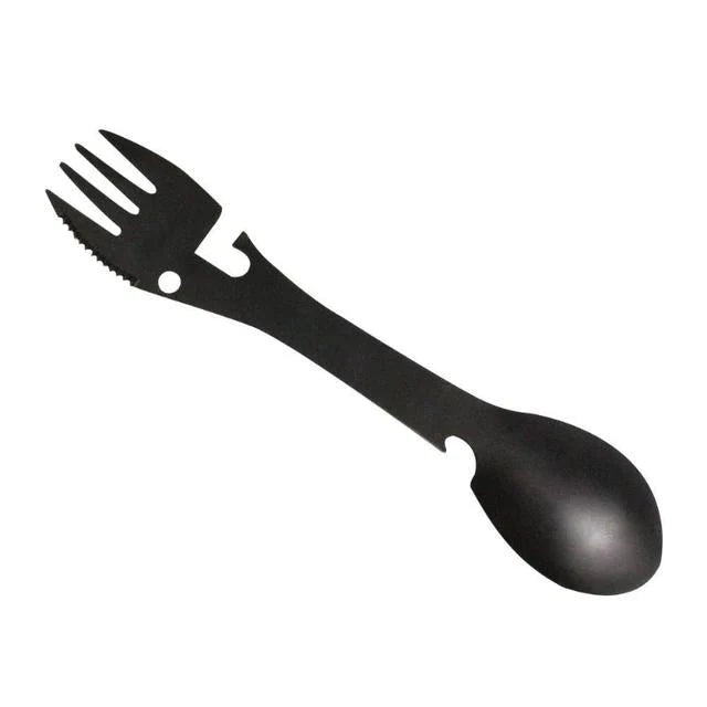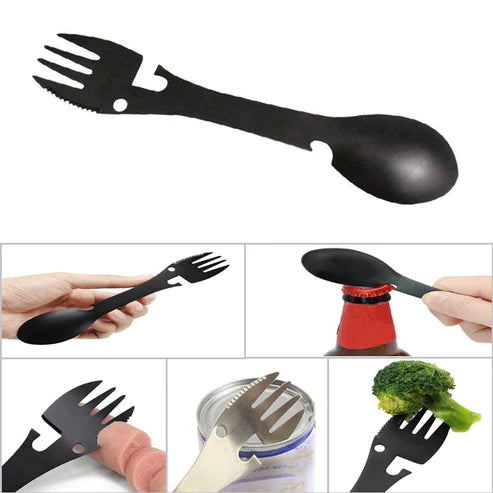 - Multi-functional can be used as a spoon, a fork, a knife (steak knife), a bottle opener, or a can opener.