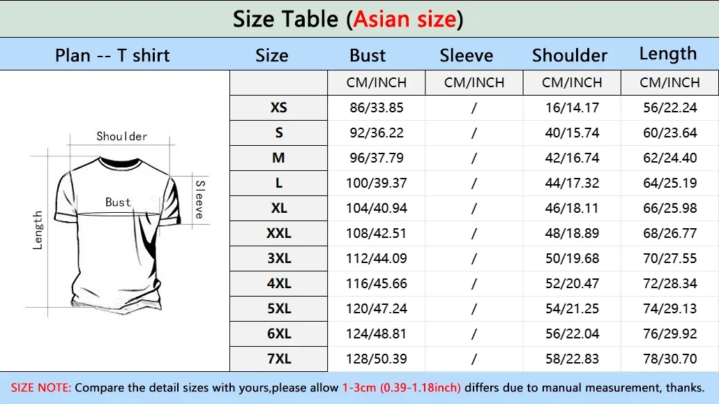 Size chart only refenrence ,please allow 1-3Cm error due to manual measurement.