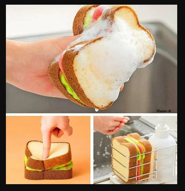- It is a creative dish-washing sponge with toast slice or sandwich shape.
