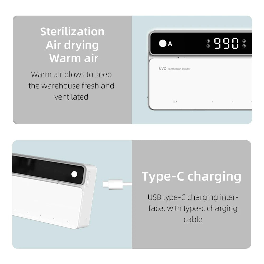 Toothbrush Holder Rechargeable Fast Drying Sterilizer With LED Display
