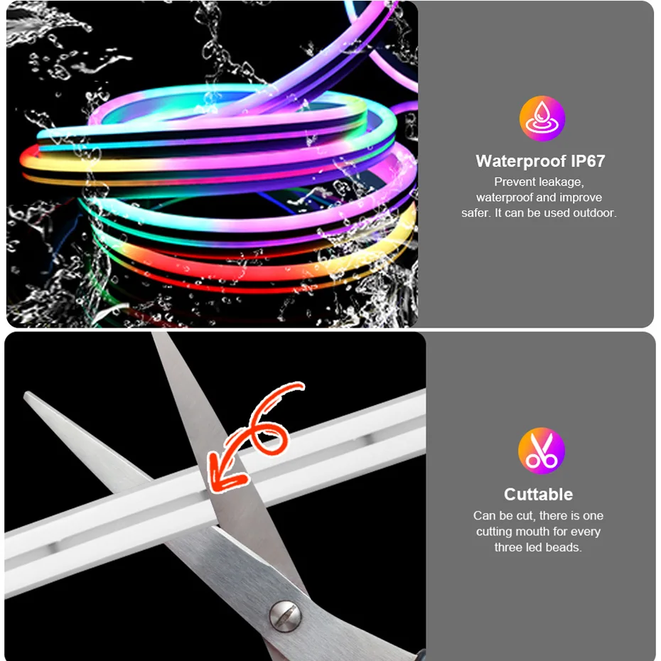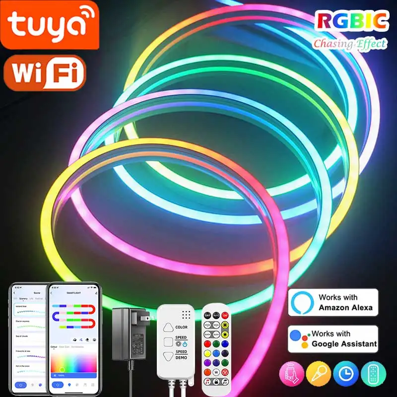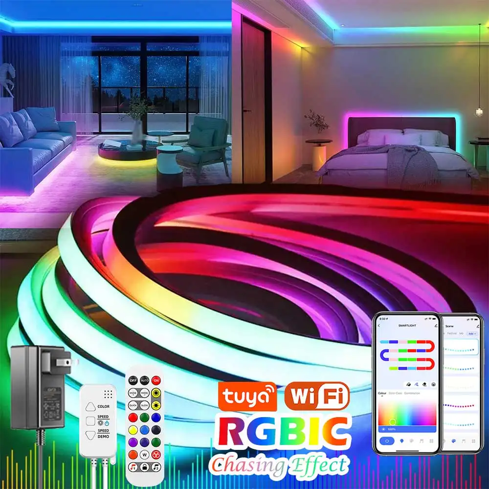 TUYA Neon LED Strip Lights 5-24V 96LEDs/M Silicone Neon Rope Light with Music Sync RGBIC Dreamcolor Chasing Strip Tape for Room