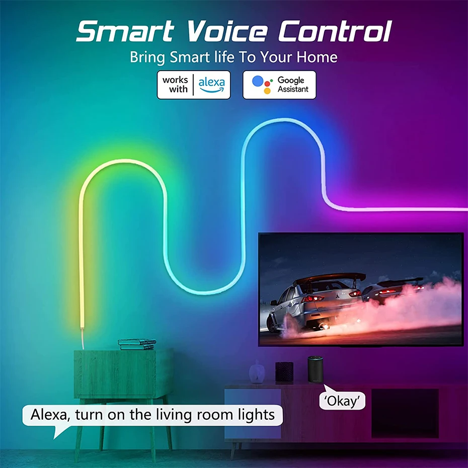 TUYA Neon LED Strip Lights 5-24V 96LEDs/M Silicone Neon Rope Light with Music Sync