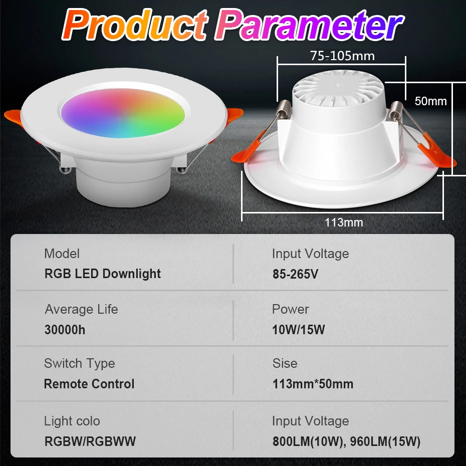 Package: 1 x LED Downlight + 1 x Remote Controller (Not included battery)