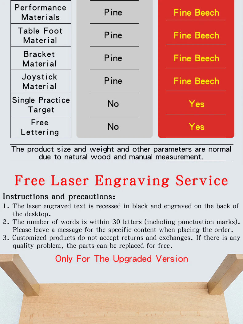 *Most of this product has been installed when it leaves the factory. Of course, you can also create your own general shape or make your own unique weapons.There are two types of generals duel, the standard version and the upgraded version. The standard version is mainly made of pine wood, weight 0.65KG, size 13*37*9CM. The upgraded version is made of fine beech wood, weight 1.5KG, size 24.5*39.5*11.2.
