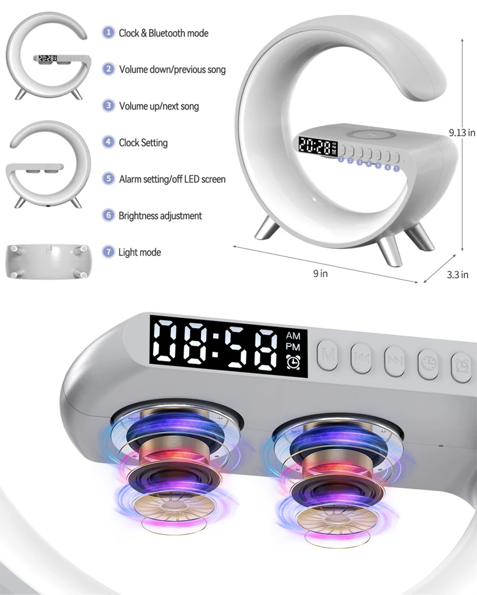 Wireless Charging Smart Bluetooth Speaker Ambient Night Light RGB Wake-Up Atmosphere Light Music Rhythm Alarm Clock APP Control